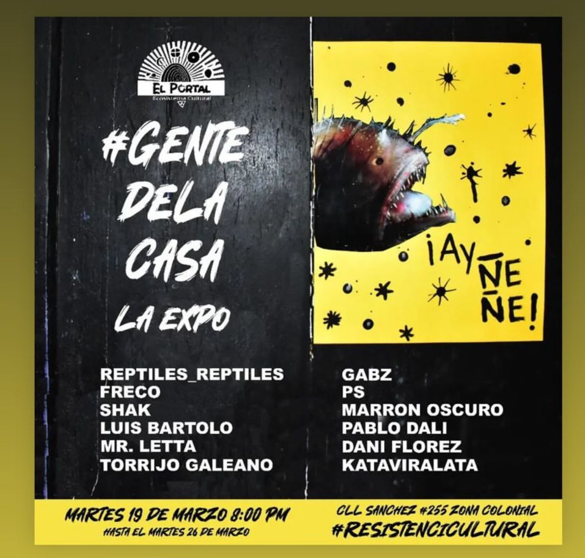 Artistas de distintas procedencias y especialidades iniciarán este martes 19 de marzo, desde las ocho de la noche, la exposición multidisciplinaria «Gente de la casa, la expo» en El Portal Cultural, calle Sánchez 255 de la Zona Colonial, la cual estará abierta al público hasta el próximo martes 26.