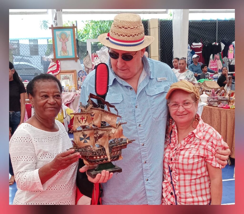 Artesanas de Dajabón muestran algunas de sus creaciones en una feria recién realizada en la frontera. En el centro el promotor turístico italiano Andrea Chiavacci.