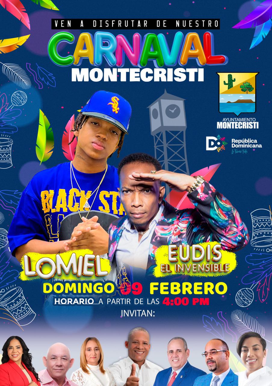 A partir de las 4 de la tarde los artistas urbanos Lomiel y Eudis, el Invencible estarán en el escenario con su energía y talento en el carnaval de Montecristi.