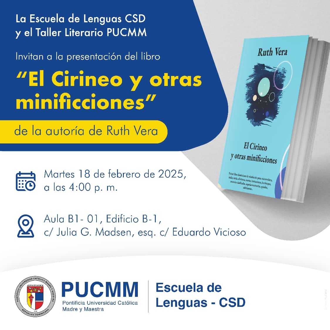 La obra es de la autoría de Ruth Vera y el acto será este martes 18 de febrero a las 4 de la tarde en la Ponticificia Universidad Católica Madre y Maestra.