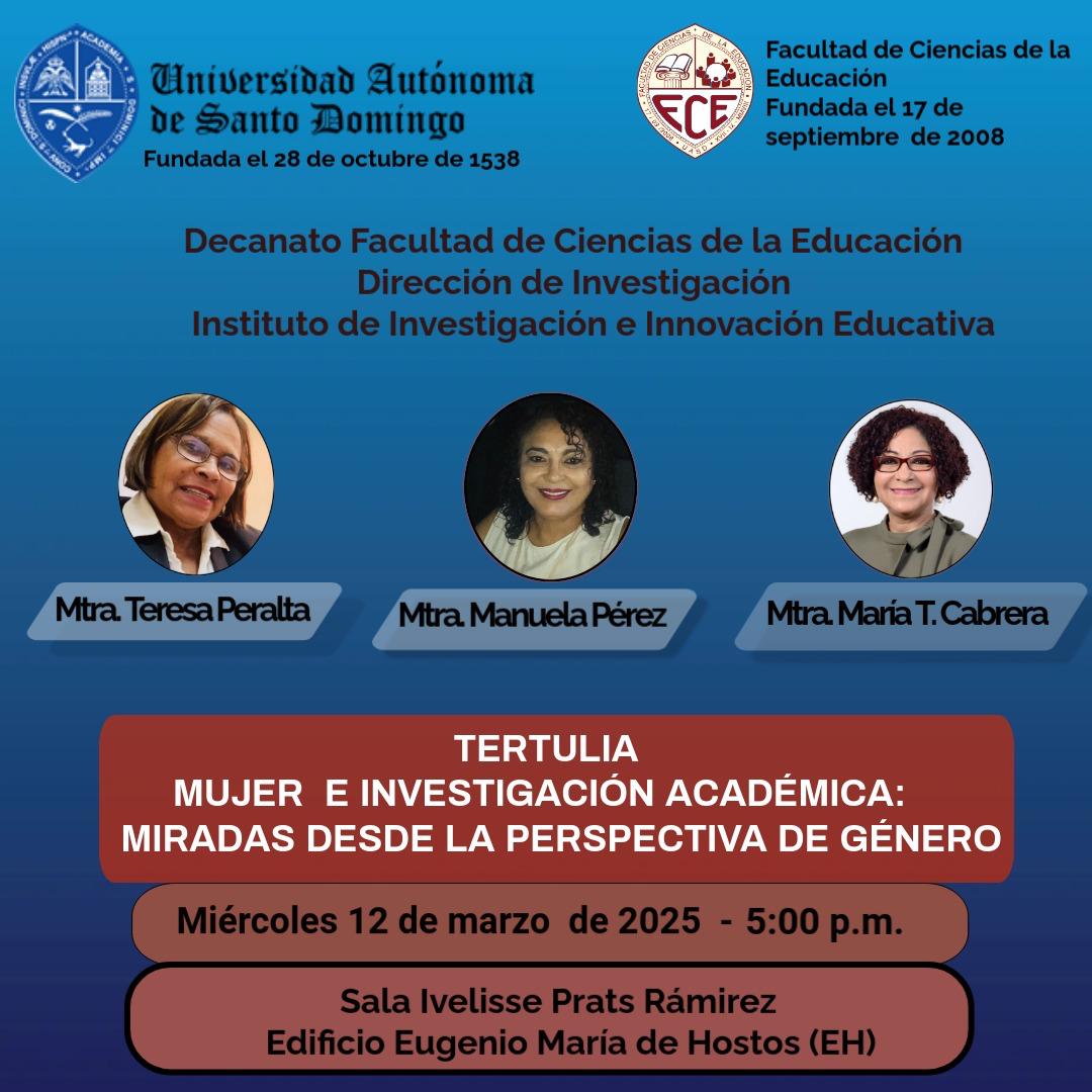 NacionalesDebatirán en UASD sobre miradas desde la perspectiva de género este 12 de marzo by Redacción marzo 11, 2025 written by Redacción marzo 11, 2025 Las maestras Teresa Peralta, Manuela Pérez y María Teresa Cabrera disertarán en el Instituto de Investigación e Innovación Educativa. 0 comment 0 FacebookTwitterPinterestEmailRedacción previous post Campesino de El Naranjo, Cotui, denuncia daños de presa de cola de Barrick Gold next post Worldcob reconoce a Vega Real con premio The Bizz categoría Be a Legend You may also like ¡Trabajar para que nos inunde el gesto que... abril 26, 2026 Cruz Roja Dominicana mantiene operaciones en provincias afectadas... abril 26, 2026 Movimiento Caamañista y FR presentan línea política este... abril 25, 2026 La violencia infantil abril 25, 2026 Lluvias e inundaciones a través del territorio nacional abril 24, 2026 Experiencias de Abril del 65 abril 24, 2026 CATALEJO: Hegemonía en declive abril 24, 2026 Obreros se unen al llamado a concentración frente... abril 24, 2026 BCRD informa que los flujos de remesas alcanzaron... abril 24, 2026 Coalición por la Seguridad Social Digna llama apoyar... abril 23, 2026
