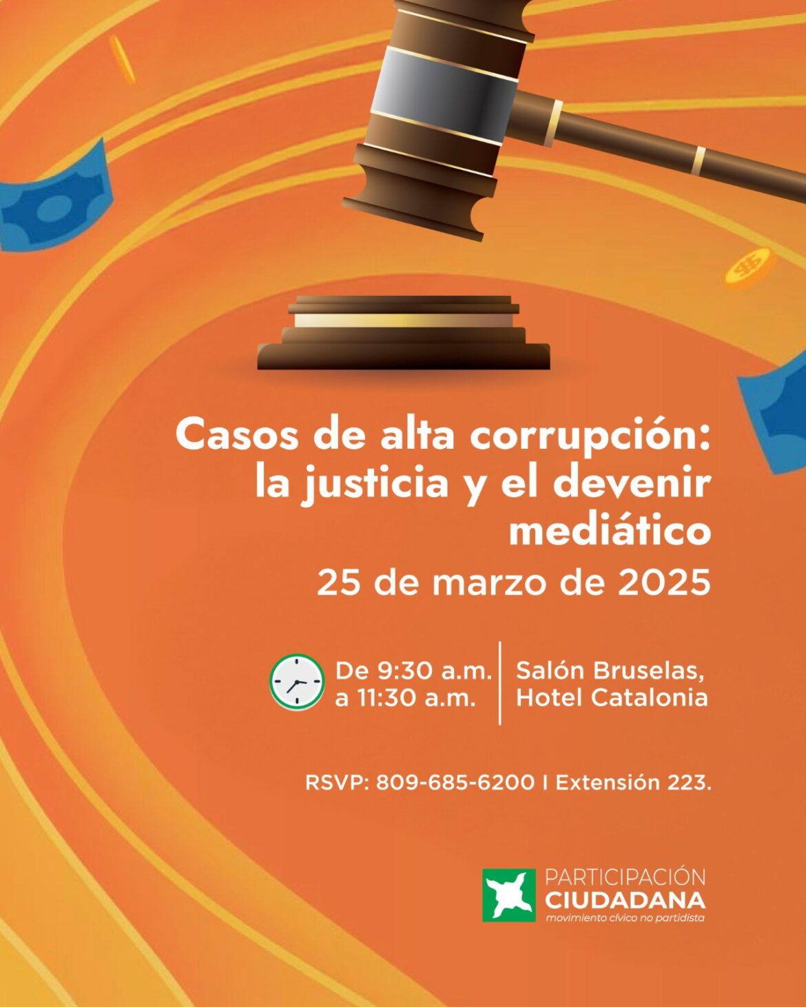 NacionalesDebatirán casos de alta corrupción este 25 de marzo en un hotel de Santo Domingo by Redacción marzo 24, 2025 written by Redacción marzo 24, 2025 La iniciativa es promovida por el movimiento cívico Participación Ciudadana y comenzará a las 9 y media de la mañana. 0 comment 0 FacebookTwitterPinterestEmailRedacción previous post Del partido demócrata-PD y sus globalistas al trumpismo con Musk y los suyos: Putin, Zelensky y Trump next post Ecuador: desastre ambiental, social y económico You may also like PRD conmemora 89 natalicio de José Francisco Peña... marzo 8, 2026 La línea 2C del metro y los vagones... marzo 7, 2026 Conmemoremos la Independencia fortaleciendo la identidad nacional en... marzo 5, 2026 La Cruz Roja Dominicana fortalece la resiliencia comunitaria... marzo 5, 2026 GALERÍA: Celebran Independencia Nacional y aniversarios de fuerzas... marzo 5, 2026 La JCE imparte conferencia sobre la nueva cédula... marzo 3, 2026 Albañiles de Santiago reclaman devolución de local ocupado... marzo 3, 2026 La mayoría de edad del Abrazo Sabanetero marzo 2, 2026 INDOMET: continúaran lluvias dispersas marzo 2, 2026 Recogen cosecha de plátanos en provincias Montecristi y... marzo 2, 2026