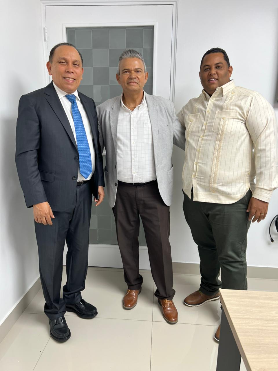 Héctor Rivas (El Gallo) se reúne con Radamés Jiménez (izquierda), vicepresidente de la FP, y Miguel Domínguez, excandidato a diputado. (Foto: Daygorod Fabián).