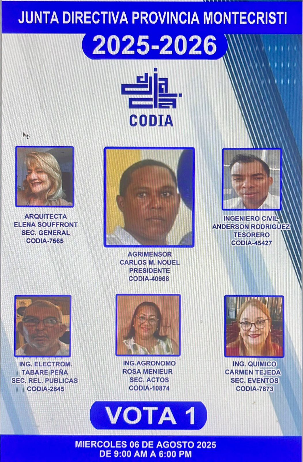 MontecristiCelebrarán elecciones en el CODIA de Montecristi by Redacción agosto 4, 2025 written by Redacción agosto 4, 2025 La votación será este miércoles 6 de agosto desde las 9.oo de la mañana hasta las cinco de la tarde en su local. En la imagen, una de las planchas que se encuentran en campaña. 0 comment 0 FacebookTwitterPinterestEmailRedacción previous post Invitan a la puesta en circulación de la obra «La Posmodernidad y sus Naufragios» next post Economía dominicana registra crecimiento interanual de 2.4 % en enero-junio de 2025 You may also like GALERÍA: Iván Marichal retrata las bellezas de Montecristi abril 22, 2026 GALERÍA: Rinden homenaje a escritores de Montecristi en... abril 20, 2026 GALERÍA: Alcaldía de Castañuelas continúa construcción de aceras... abril 19, 2026 GALERÍA: Muestran primeras exposiciones de la Feria Regional... abril 18, 2026 Daygorod Fabián analiza rol del maestro dominicano en... abril 17, 2026 En barrio Los Garajes de Montecristi claman por... abril 16, 2026 GALERÍA: Decenas de personas de Carbonera protestan ante... abril 15, 2026 GALERÍA: Federación de Juntas de Vecinos Anita celebra... abril 12, 2026 Profesores de Guayubín reclaman reparaciones de aulas y... abril 11, 2026 Montecristi y el Cibao central están en alerta... abril 10, 2026