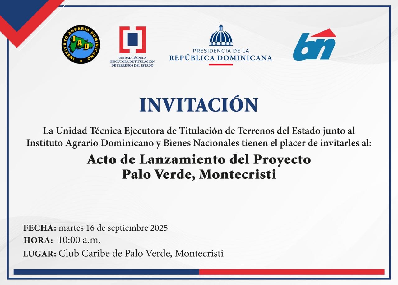 MontecristiIniciarán titulación de terrenos del Estado en Palo Verde by Redacción septiembre 13, 2025 written by Redacción septiembre 13, 2025 Este martes 16, desde las 10:00 de la mañana, se realizará un acto, según invitación del director de ese distrito municipal, correspondiente a Castañuelas. 0 comment 0 FacebookTwitterPinterestEmailRedacción previous post Organizaciones sociales convocan a su XIV Asamblea Regional del Cibao next post Avelino Stanley presenta discurso de ingreso a la Academia Dominicana de la Lengua You may also like Daygorod Fabián analiza rol del maestro dominicano en... abril 17, 2026 En barrio Los Garajes de Montecristi claman por... abril 16, 2026 GALERÍA: Decenas de personas de Carbonera protestan ante... abril 15, 2026 GALERÍA: Federación de Juntas de Vecinos Anita celebra... abril 12, 2026 Profesores de Guayubín reclaman reparaciones de aulas y... abril 11, 2026 Montecristi y el Cibao central están en alerta... abril 10, 2026 Guido Gómez Mazara estará este domingo 12 en Montecristi abril 9, 2026 El Distrito Educativo 13-01 de Montecristi invita a... abril 8, 2026 GALERÍA: Consejo Fronterizo aporta dinero para bomba de... abril 8, 2026 GALERÍA: Síndico Jenrry Castro remoza letrero de playa... abril 7, 2026