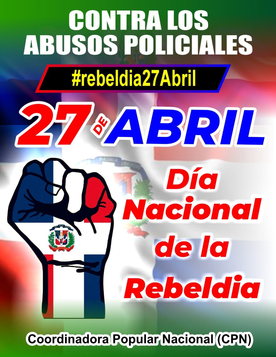 NacionalesCoordinadora Nacional Popular llama a movilizarse contra los abusos policiales by Redacción abril 16, 2026 written by Redacción abril 16, 2026 Diversas organizaciones populares han declarado el 27 de abril como Día Nacional de la Rebeldía. 0 comment 0 FacebookTwitterPinterestEmailRedacción previous post Detienen en Haití a alcalde culpado por estampida con 35 muertos next post Continúan las lluvias en toda la república You may also like Continúan las lluvias en toda la república abril 16, 2026 La Cruz Roja reitera su compromiso de prevención... abril 16, 2026 Presidente Abinader recibirá comité gestor del Plan Estratégico... abril 16, 2026 El COE mantiene 18 provincias y el Distrito... abril 15, 2026 Canoa Púrpura: Por nuestra gente y por toda... abril 14, 2026 Senador Julito Fulcar anuncia inicio de construcción de... abril 14, 2026 Del PEME a la «Paz Pactada»: la institucionalización... abril 13, 2026 La Cruz Roja Dominicana coordina intervenciones para asistir... abril 12, 2026 Siembra de libros en El Gramazo: cuando la... abril 12, 2026 De acuerdo con el consenso, pero… abril 12, 2026