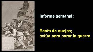 Dennis SmallEIRNSInforme semanal: Basta de quejas; actúa para parar la guerra by Redacción abril 20, 2026 written by Redacción abril 20, 2026 0 comment 0 FacebookTwitterPinterestEmailRedacción previous post Periodismo y locución en tiempos de IA next post GALERÍA: Rinden homenaje a escritores de Montecristi en Feria del Libro You may also like Aumenta el costo de la energía y seguros... abril 24, 2026 El mundo se encuentra en un grave punto... abril 23, 2026 ¡Detengamos la guerra contra Irán ya! abril 19, 2026 Expertos en salud mental escriben una carta al... abril 16, 2026 Informe semanal: El Congreso de EU tiene que... abril 14, 2026 Israel ataca el Líbano para sabotear el cese... abril 11, 2026 El mundo sigue al borde del precipicio…. abril 10, 2026 Movilización de la humanidad contra la “Operación Edad... abril 6, 2026 ¿Se puede impedir que la guerra contra Irán... abril 3, 2026 Las perspectivas económicas comienzan a parecer más sombrías marzo 28, 2026